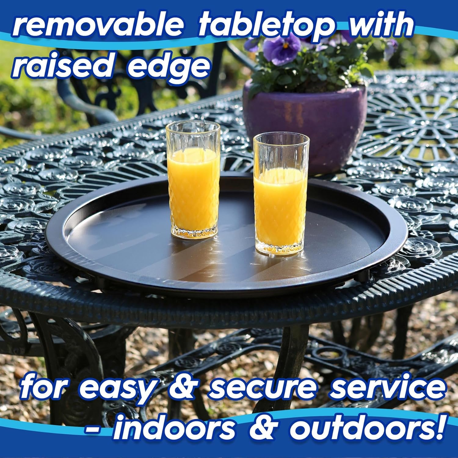 Removable Tray with Raised Edge – The detachable tabletop features a subtle raised rim to help keep drinks, dishes, and decorative items securely in place, making it perfect for everyday use or effortless entertaining.